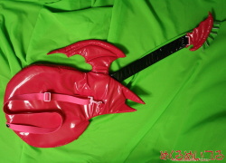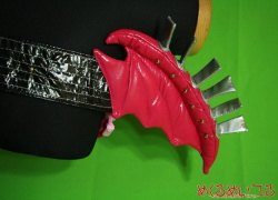 CHUxCHUアイドる / チューア・チュラム ![]() ※写真をクリックすると大きい写真が見れます ■仕様■ ![]() ・ギターバック 設定よりも少しネックを短めにしたギターバッグを製作しました。 材質はエナメル生地、側面がファスナーで開くようになっています。 バンドは長さ調整ができるようにプラスチックパーツの付いたナイロンベルトです。 顔のような模様と吸血鬼尻尾模様はプリントです。 ペグ(弦を巻く機構)は本物をつけるとヘッドが重さに負けてしまうのでシルバーのエナメルで製作しています。 ヘッドからネック、ボディにかけて薄手の固綿をいれてあります。 弦は光沢のある糸でステッチです。 ※製作の一例です。お客様のお好みに応じて素材の変更、細部の追加・省略ができます。 フルセットはもちろん、ご予算に合わせて単品オーダーも可能です。 お見積り依頼、ご注文はこちらまで t-yanagi@mekurumeiteru.net 衣装はもちろん、専用ウィッグから小道具までなんでもご相談ください。 オーダーメイド衣装製作は『めくるめいてる』におまかせください! |