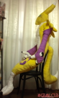 デジモンセイバーズ / レナモン ![]() ![]() ![]() ※写真をクリックすると大きい写真が見れます 5頭身以上あるレナモンを等身大で再現すべく、骨格から製作しました。 骨格部分は関節の稼働ができ、耐久性も出せるように軽量ステン素材を使用しています。 詰め綿はウレタンと綿を併用して、軽さと立体感を出しました。 皮膚の部分(表面)はやわらかく抱き心地の良い素材を選びました。 毛足の短いファーと、 ふかふかの長いファーを組み合わせて質感を出しています。 手足の爪は合皮で製作しています。手甲パーツ部は綿素材を使いました。 膝の模様、お顔はフェルト素材と刺繍で仕上げています。 170cm超の身長があるため自立は出来ませんが、細い腰でもくにゃっとなりにくくなっています。 本体はドライクリーニングでお手入れできるようになっています。 お見積り依頼、ご注文はこちらまで t-yanagi@mekurumeiteru.net オーダーメイドぬいぐるみは『めくるめいてる』におまかせください! 細部へのこだわりはオーダーメイド製作ならではの醍醐味です。 手のひらサイズから2m超のぬいぐるみまでなんでも製作可能です。 |
