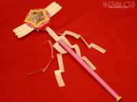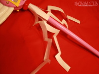 かんなぎ / ナギのおおぬさ ![]() ※写真をクリックすると拡大します ■仕様■ ・ナギのおおぬさ 杖部分は樹脂素材で成型後、エアブラシで塗装しています。 エンド部分には黄色いリングのついたキャップをつけ、透明度の高いクリスタルを埋め込みました。 モチーフ部分と杖の間に紙垂を付けています。 紙垂も普通の紙では破れてしまうので、和紙風の樹脂シートを使い、耐水性と耐久性を出しました。 円盤と星、羽のモチーフはイベント会場までの持ち運びやすさ、写真写りを考慮して製作しています。 弾力のあるウレタン素材で土台を成型後、エナメルを貼り込んでいます。 星の内側はホログラムフィルムを使い、全体をクリア塗装して仕上げましたので立体感が出ています。 ※製作の一例です。お客様のお好みに応じて素材の変更、細部の追加・省略ができます。 その他、コスチュームや小物類の製作も可能です。 お見積り依頼、ご注文はこちらまで t-yanagi@mekurumeiteru.net オーダーメイドコスプレ衣装製作は『めくるめいてる』におまかせください! 他店で扱っていないものもあきらめずご相談ください!! |