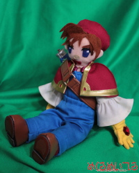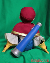プチカラット / ガーネット ![]() ※写真をクリックすると大きい写真が見れます ![]() 高さ15〜20cmのぬいぐるみを製作しました。 ブラウスとズボンとケープ、帽子と手袋を着用したぬいぐるみになっています。 手指は五本に分けて、手袋の甲に八角形のクリスタルパーツを取付けました。 立襟の付いたケープとズボンは胸の前の丸い輪状パーツで繋がっています。 ブラウスは薄手の生地、帽子とズボンとケープはしっかりした生地を使いました。 手袋はスエードのような起毛生地、靴は合皮を使いました。 足部分の生地を途中で切り替えて赤い靴下を履いているように見せています。 顔部分と首回りの肌は肌色のぬいぐるみ用起毛生地を使用しています。 髪は茶色のフェルト生地、眉と目は刺繍で口はフェルトを縫い付けています。 鼻の頭の絆創膏もフェルト生地を使って製作しています。 頬はうっすら桃色になるようグラデーション彩色しました。 肩のベルトは合皮、望遠鏡部分は青い合皮と銀色のエナメル生地を使いました。 望遠鏡のレンズが入る部分には透明なプラスチック板を入れています。 望遠鏡の筒部分にも薄いプラスチック板で芯を入れて硬めの質感に仕上げました。 ベルトの取付け金具はフック状のパーツを使っています。 ベルトの胸前部分には飾りの四角カンを取付けました。 お見積り依頼、ご注文はこちらまで shop@mekurumeiteru.net オーダーメイドぬいぐるみは『めくるめいてる』におまかせください! 細部へのこだわりはオーダーメイド製作ならではの醍醐味です。 手のひらサイズから2m超のぬいぐるみまでなんでも製作可能です。 |