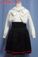 魔法騎士レイアース / 獅堂光 制服 ![]() ![]() ※写真をクリックすると大きい写真が見れます ■仕様■ ・ブラウス 設定ではブラウスとリボンが繋がっていますが、 お洗濯の面や見栄えを考慮して別パーツとして製作 ブラウスは前中心より向かって右寄りの位置(正面から見てジャケットで隠れる位置)でボタン開き。 黒いラインが襟に入ります。 素材は多くの制服ブラウスに使用される混紡ブロードを使用。 ・リボン 作り付けのリボンに襟の裏を通す細いリボンがついています。 ちょうど最近のブレザー制服の作り付けリボンのような感じです。 細いリボンの部分は留め具が付いているので、後ろでパチンと留めるだけです。 リボンの細かい長さ調整も出来ます。 素材はちょうちょ部分が大きくふわふわするように透けない程度に薄い化繊を使用。 ラインの部分はブラウスの襟と同じ素材を使います。 アニメ版のワッペンなし、原作コミックス版のワッペンありをお選びいただけます。 ・ジャケット 袖部にカフスのある長袖ショート丈ジャケットです。 カフスは白で、ブラウスと同系の色を使います。 ライン素材はブラウスとおそろいです。 素材はホテルユニフォームや学校制服に使われる丈夫でメンテのしやすいものを使用。 色味は落ち着いた赤を選びます。 ・スカート 細かめの箱ひだのプリーツスカートです。黒地に裾の赤いラインが入ります。 プリーツの形が保ちやすい素材を使い、谷折になる部分にはステッチを入れておきます。 ウエストベルトには後ろに当たる部分にやわらかめのゴムを入れて、多少ゆとりを持たせます。 ・カマーバンド こちらも本当はハイウエストのスカートという設定なのですが、 スカートのウエスト周りに余裕を持たせるため別パーツで製作 スカートと共布で、マジックテープで留めるようになっています。 ・スリップ スカートの中のフリルの部分はアニメ設定では「下着」と明記されていたので、 ウエスト周りがもたつかないようワンピース型のスリップとして製作。 ふつうプリーツスカートの裏地はギャザーを寄せないのですが(主に保管地のプリーツ崩れを防ぐため)、 作品中では豪快にふりふりしているので、ここはあえてふりふりさせてしまいます。 別パーツにしておけば、しまうときには外せるのでスカートの型崩れを防げると言う利点もあります。 かぶって着るだけの簡単着用で、上半身周りは肌着と同じ綿ニット、 スカート部分は裏地に使うすべすべした素材です。 スカート自体にギャザー、裾部のフリルレースもギャザーでウエスト部すっきり、裾ふわりのラインを実現します。 お手持ちのワンピースなどの下着としてもご利用いただけます。 ・ソックス 赤いソックスの上に黒いラインを縫い付けてあります。 ライン部分はソックスに似た薄手の伸縮素材で、履いたときに編地のソックスと一見して見分けがつきません。 ※製作の一例です。お客様のお好みに応じて素材の変更、細部の追加・省略ができます。 専用ウィッグやブーツカバーの製作も承ります お見積り依頼、ご注文はこちらまで t-yanagi@mekurumeiteru.net |