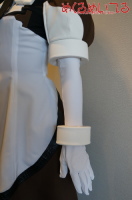 サモンナイト3 / クノン ![]() ※写真をクリックすると拡大します ![]() ・専用ウィッグ/ナースキャップ風ヘッドパーツ 耐熱毛のウィッグをベースとし、カット・スタイリングを施しました。 スタイリングキープのため、熱入れのあとに特殊樹脂にて成型しています。 特徴あるもみ上げ部分の毛束と、前頭部からサイドにかけての毛の流れを 再現するために、80cm長のロングウィッグベースから切り出しています。 ナースキャップ風のヘッドパーツは、ワンピースと共布です。 ナースキャップ風の形状になっており、ウィッグや自髪に コームで留めるようになっています。 ![]() ・造形パーツ付きワンピース 資料ではワンピースの内側にシャツを着て上からエプロンを重ねて 着用しているように見えますが、今回は衣装全体の統一感を出すため、 また着やすさを考慮し重ねているように見える1着のワンピースとしてご提案させて頂きました。 着脱は背中側のコンシールファスナーで行うようになっています。 お客様のご希望に合わせて、ワンピースとエプロンを別々に製作することも可能です。 スカート部分はたっぷり目のフレアで、シワがあまり寄らないよう、丸く広がるシルエットです。 お手持ちのパニエを重ねると、もっとふんわりさせることができます。 素材はシワになりにくく扱いやすいポリエステルツイルをメインとし、 ロボットのような質感を出すために、造形部分はエナメルや合皮を張り込んで再現しました。 背中、胸の立体パーツは取り外しが容易に出来るよう、大振りなスナップボタンを使っています。 ネクタイと十字架パーツも作り置きで取り外しが可能です。 ・造形パーツ付きグローブ ![]() お客様の腕まわりから指先まで採寸をさせて頂き、グローブを製作しました。 脇下から指先までのロンググローブは、ワンピースの袖口とスナップ留めになっています。 タイツ一体型ブーツよりも薄いマットタイプのライクラ2wayレオタード素材を使用しました。 手首の造形パーツはマジックテープ留めではなく、生地を傷つけにくい 大振りなスナップボタン留めになっています。 ウレタンベースで軽く丈夫な作りになっています。 お客様のご希望で切り替えの黒ラインは無しで製作していますが、 パイピング入れやステッチで再現することも可能です。 ・タイツ一体型ブーツカバー ![]() パッと見、クノンの靴そのものですが、ベースには歩きやすく、 身長が高くならないベース靴を用い、タイツ一体型のブーツを製作しました。 ブーツとタイツを分けたり、ニーソ一体型ブーツなどお客様のお好みで製作可能です。 タイツ本体にはツヤ有りのライクラ2wayレオタード素材を使用しました。 ウエスト部分は深履きのタイツにしています。 靴下部のデザインはエナメルを切り替えで再現し、 靴底は耐久性を上げるため固めの合皮で仕上げています。 靴底の張り替えが可能な作りになっています。 ![]() すべての造形パーツは取り外しが可能ですので、 衣装本体はご自宅で手洗い洗濯が可能です。 コミケットなど人混みのイベントでぶつかっても壊れにくい素材です。 「トランク一つで完コス」をコンセプトに製作しています。 【お客様着用例】 ![]() ※製作の一例です。お客様のお好みに応じて素材の変更、細部の追加・省略ができます。 お見積り依頼、ご注文はこちらまで shop@mekurumeiteru.net サモンナイトシリーズの衣装製作は『めくるめいてる』におまかせください 細部へのこだわりはオーダーメイド衣装ならではの醍醐味です!! フルセットはもちろん、単品オーダーも喜んでお受けいたします。 |