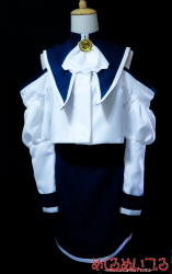 サモンナイト / ナツミ リィンバウム服 ![]() ※写真をクリックすると拡大します ![]() ・トップス/別体襟パーツ/ハイウエストスカート トップス、別体襟パーツ、スカートは共布で、実際の制服にも使われる ハリのある化繊素材を使用しています。しわになりにくく、自宅でお洗濯も可能です。 トップスの肩下〜腕部分には、表地と裏地の間にチュールを挟み、 立体的なシルエットが出るよう工夫を凝らしました。 襟本体には芯地を入れパリっとした仕上がりになっています。 襟裏はトーンを落とした紺色の裏地がついています。 トップスはセンターでスナップボタンあきです。 ファスナー仕様にも変更できます。 ハイウエストスカートはサイドでコンシールファスナーあきです。 取り外し可能な透明肩ストラップがついています。 ・首もとジャボパーツ/造形クリスタルパーツ 首元のジャボパーツは共布でアニメチックなシルエットで仕立てていますが、 シルクなサテンなどのふんわりした素材でも製作可能です。 造形クリスタルパーツは45mmのレジン仕上げで、土台は金属造形です。 透明度の高い大振りなクリスタルが衣装全体の質感アップに一役買っています。 こちらはブローチピン留めですので、お洗濯時には外して保管できます。 ※製作の一例です。お客様のお好みに応じて素材の変更、細部の追加・省略ができます。 専用ウィッグ、ブーツカバーの製作も可能です。 お見積り依頼、ご注文はこちらまで shop@mekurumeiteru.net サモンナイトシリーズの衣装製作は『めくるめいてる』におまかせください 細部へのこだわりはオーダーメイド衣装ならではの醍醐味です!! フルセットはもちろん、単品オーダーも喜んでお受けいたします。 |