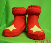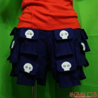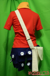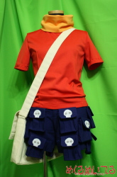 サモンナイト2 / ユエル ![]() ※写真をクリックすると拡大します ■仕様・詳細■ ・ネックウォーマー 手袋と共布のネックウォーマーです。 すっぽりと頭を通して着用します。 ニットなのでしわになりにくく、くしゅくしゅした感じを出しやすくなっています。 ・半そでカットソー ![]() しましまシャツの上に着る赤い半そでのカットソーです。 袖のステッチ部分はミシン縫製の後、刺繍糸で手まつりしています。 身頃の縦線模様はピンタックのようにつまんで立体感を出しました。 ・しましまシャツ ![]() 特注のオレンジと黄色のしましま布地を使用しました。 混紡カットソー素材なので、着心地、フィット感も抜群です。 丸首の長袖です。 ・手袋 ![]() 化繊ニット素材の手袋です。星のアップリケ模様入り。 ステッチ部分とアップリケはハンドクラフト感が出るよう手まつりしています。 ・耳カチューシャ ![]() しっぽと同素材を使用しました。 耳の内側のファーを尻尾の先と同じ白か、設定色のピンクかお選びいただけます。 ふわふわの毛足の長いファーなので、形を整えて毛を適宜カットしています。 ・尻尾 カットソーの下に隠れるように腰紐で装着してください。 ふさふさした毛足の長いファーを使いました。 全体は青、毛先は白のフェイクファーです。 ・ポケット沢山しっぽ付半ズボン ![]() ポケットは全部で16個!もちろん全部使えます。 名刺やお菓子をいれたり小さいものであれば携帯やカメラも入ります。 ポケットのフラップにはすべてドクロのアップリケ入り。 しわになりにくく取り扱いやすい混紡生地を使いました。 ・しましまオーバーニー ![]() しましまシャツと同素材で製作しました。 アニメ設定のように膝に星のアップリケを入れることも可能です。 筒縫いのフラットな靴下ではなく、かかと部分も立体的に作ってあるので履きやすくなっています。 ・肩掛けバッグ 飾りではなく、実際に荷物をいっぱい入れても大丈夫なしっかりした素材で製作しました。 肩から提げるタイプの大きいカバンです。 サイドに金具がついています。 ・ブーツカバー ![]() パッと見、ユエルの靴そのものですが、お客様からお預かりした靴にぴったり合うブーツカバーを製作しました。 靴はパンプスやローファー、スニーカーなどお客様のお好みに合わせて。 つま先や足の甲など、全体的に丸みのあるベース靴は当店でもご用意可能です。 素材は底部が合成皮革、ボディは半そでカットソーと共布で製作しています。 飾りステッチは手刺繍、アップリケも手まつりで付けています。 ニット素材なのでスリッポンのように履くことが出来ます。 カフス状の折り返し部分(ステッチの入っている部分)は厚みを出すため中綿を入れています。 ・専用ウィッグ 全体的に毛先を無造作感が出るようにカットして、 肩にかかるかかからないかくらいのストレートウィッグを製作しました。 襟足部分の毛は前側より長くなっています。 前髪は毛束感が出るようワックスでまとめ、おでこの中央付近にぴょんと立った毛束を作ります。 発色のよい非耐熱毛を使用しています。 カチューシャを省いてウィッグ自体に耳を縫い付ける加工もできます。 ※製作の一例です。お客様のお好みに応じて素材の変更、細部の追加・省略ができます。 お見積り依頼、ご注文はこちらまで t-yanagi@mekurumeiteru.net サモンナイトシリーズの衣装製作は『めくるめいてる』におまかせください 細部へのこだわりはオーダーメイド衣装ならではの醍醐味です!! 【コスチューム着用例】 ![]() |