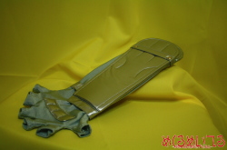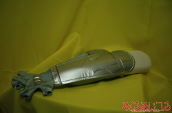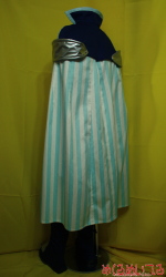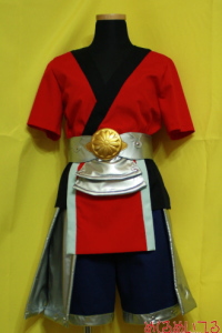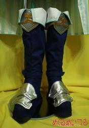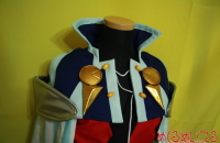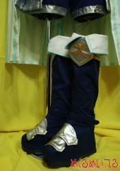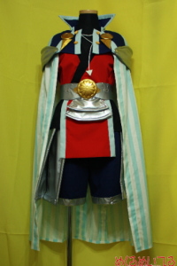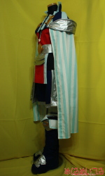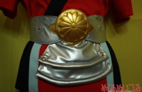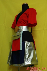 風来のシレンDS / シレン ![]() ※写真をクリックすると大きい写真が見れます ![]() ![]() ■仕様・詳細■ ・ケープ 紺色のケープに水色の合皮で縁取りと模様付けを施しています。 しっかりした固めの素材を使用しました。襟の裏に道中合羽を留めるスナップボタンが付いています。 前身頃のナツメ形ボタンは飾り。 表面のボタンと同じ位置の裏についているボタンに白い紐のループを引っ掛けて着用します。 白い紐の先には合皮製の三角のパーツを縫い付けてあります。 紐、ボタンをつけたままネットにいれて洗うことができます。 ・道中合羽 特注の水色と白のストライプ生地で製作しました。ケープの裏に付けるスナップボタンつき。 本来の道中合羽ははぎ合わせのあるフレアスカートのような形なのですが、 縞模様の出方を優先させたいので、肩のダーツで詰めて製作しました。 お洗濯の際は外して洗うことができます。 ・胸パーツ(左右セット) 発泡樹脂をエナメルでくるむようにして製作しています。 全体に裏側から補強のためにプラスチック板を接着し、ブローチピンを付けています。 ケープのお好きな場所にブローチピンで留めることができます。 ・肩パーツ(左右セット) ケープの上から付ける肩パーツです。 折り曲げできるウレタン素材を使用し製作しています。 スナップボタンで取り外しが可能です。 スナップは表側の装飾も兼ねています。 コスプレのまま動くことができるよう、中央付近にずれ落ち防止用のマジックテープをつけました。 ・着物 黒い襟のついた赤い着物です。一見シンプルに見えますが、設定どおり複雑なデザインを 腰から下は黒い生地に切り替えて仕立てています。 通常の着物より身幅をスリムに取って、着用しやすくしています。 背面は切り替え部分から赤い垂れを、前面は赤に水色合皮の縁取りの垂れを下げます。 水色の合皮は合羽と共布です。 ・ベルト 背面マジックテープ留めのベルトです。 発泡樹脂をエナメルでくるむようにして製作しています。 カシメ飾り部分は金属製のカシメを打ち込んでいます。複雑な模様部分のデザイン、立体曲面も忠実に再現しました。 金色と銀色のエナメルは金属感を出すよう、光沢のあるものを選びました。 ・パンツ ウエストベルトにパンツ本体と銀色エナメルの垂れ部分を縫いこんだ作りになっています。 右脚の垂れは二枚重ねになっています。 垂れのふちには厚みを出すためウレタンを入れてステッチ加工、 二枚重ねの下側の垂れにはカシメも入っています。 左側の縁は炎のようなメラメラした模様になっています。 パンツ部分はケープと共布です。裾の飾りベルトもエナメルとカシメで製作しています。 前ファスナーあきです。 ・足輪(右側のみ) 胸パーツやベルトと同素材の銀色のエナメルと発泡樹脂で製作しました。 脚の内側でしっかりとマジックテープで留められますので、動いても平気です。 表面には盛り上がった複雑な模様も再現しています。 ![]() ・手甲(左右セット) 胸パーツやベルト同様、銀色のエナメルと発泡樹脂で製作しました。 手首と肘下のベルトはマジックテープ留めになっています。 甲部分には彫り込んだような模様を再現しました。 ・指貫グローブ(左右セット) 薄いグレーの2way伸縮素材(レオタードに使う素材)で製作しましたので、フィット感も抜群。しっかり手になじみます。 お客様の手のサイズに合わせて指先をカットしたタイプの手袋です。もちろんカット部分も丁寧に処理しています。 手甲の下に着用します。 手の甲にあたる部分には銀色エナメルの四角いモチーフがつき、 モチーフの内側にウレタンを入れて立体加工。ステッチで押さえて凹凸を出しています。 ![]() ・ブーツカバー(左右セット) お客様からお預かりした靴に合わせてブーツカバーを製作(靴を加工)しました。 今回は身長設定に合わせるため、お客様のご希望でヒール高めの厚底ブーツベースに加工しています。 厚底ブーツであることがわからないよう、全体バランスをとってブーツを製作しています。 合皮製のブーツカバーに銀色エナメルの飾りがつきます。 前中心にコンシールファスナーがつきます。 写真でおわかりになると思いますが、ファスナー取り付け部分はほとんど見えないように作りこんでいます。 折り返し部分は生地素材に水色の合皮で縁取りをしています。 足の甲につく銀色エナメル飾りは取り外し可能ですので、持ち運びや収納がコンパクトにできます。 足首部分に黒い合皮の共布ベルト、 脛の六角形パーツは金色のエナメルで縁取りを付けた銀色のベルトがつきます。 銀色のベルトは脚の後ろでマジックテープ留め、六角形パーツの裏側にもマジックテープがつきます。 ※製作の一例です。お客様のお好みに応じて素材の変更、細部の追加・省略ができます。 フルセットはもちろん、ご予算に合わせて単品オーダーも可能です。 お見積り依頼、ご注文はこちらまで shop@mekurumeiteru.net 風来のシ