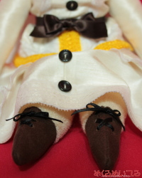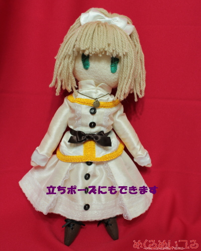 Sound Horizon イドヘ至る森へ至るイド メルの持ってるエリーザベトぬいぐるみ ![]() ※写真をクリックすると大きい写真が見れます ![]() "ジャケットイラスト"でエリーザベトが持っているぬいぐるみを製作しました。 ポニーテールにした髪は毛糸素材、1本1本手作業にて植毛しています。 頭の白いリボンはふんわりしたサテンクレープ生地で製作しています。 顔は素朴な表情を出すために、一針一針手刺繍にて製作しています。 ドレスデザインはエリーザベト(幼少期)のものに倣います。ドレスの着脱は出来ません。 ドレスの生地は生地サンプルよりお選び頂けますので、お客様のイメージに近い生地で製作可能です。 製作例は、ポリエステルシャンタン無地です。 靴は着脱できませんが、スエード生地でショートブーツを製作し、ぬいぐるみに履かせているこだわりです。 手足間接はボタン縫い付けなので、座らせることも立たせることもできるようになっています。 金色の丸いモチーフを下げた金鎖のネックレスもぬいぐるみの大きさに合わせて製作します。 製作の一例です。お客様のお好みに応じて素材の変更、細部の追加・省略ができます。 ぬいぐるみの大きさは手のひらサイズから1m超までご希望にあわせて製作可能です。 お見積り依頼、ご注文はこちらまで t-yanagi@mekurumeiteru.net Sound Horizonシリーズの衣装製作も『めくるめいてる』におまかせください! 独特の世界観をそのままに。3次元の衣装に再現いたします。 |