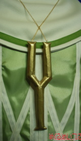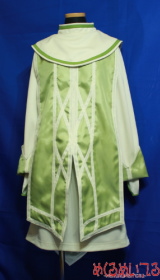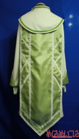 テイルズオブジアビス イオン ![]() ■仕様■ ![]() ・頭飾り カチューシャタイプの頭飾りです。 立ち上がり部分にはガウンと同じ生地を使い、金のエナメルで縁取りします。 白いファーの房飾りは金の縁取りにハトメ穴をあけて、丸い金具で吊ってゆらゆら揺れる作りです。 耳前の毛束につける飾りはマジックテープで止めるようになっています。 ・専用ウィッグ 耳脇の毛がゆるくカールしたロング丈、残りは外はねショート丈にカットしています。 前髪は少し長めに残し、目にかかる部分を梳いてやさしい表情に見えるようにしました。 耐熱毛を使用するので絡みにくく、自然な手触りになっています。 お色は暗いグリーンです。 ・ワンピース インナーに着ているニット生地のワンピースです。 袖部分は身頃よりもフィット感のある薄手のニット生地で、 中指を通すループ付きの手甲の部分まであります。 手甲部分に抹茶色の縁取りつき。 裾は2重ステッチでラインをつけています。 背面コンシールファスナー開き。 ・ガウン すっぽりと頭からかぶって着用していただくガウンです。 首の後ろのケープに隠れる部分にファスナーあき。 薄い緑色のケープのような部分には白いライン模様が入っています。 たっぷりした長袖の折り返し部分も薄い緑色、袖は白色です。 ガウンに使用する生地は光沢の有無をお選びいただけます。 光沢のある素材は光った部分が白く写るのでゲーム設定絵っぽく、 無い素材は均一に発色するのでアニメ絵っぽくなります。 ・ケープ ワンピースの身頃と同じニット生地のケープです。 立ち襟とケープの丸み部分にガウンの身頃に近い色でラインが入ります。 肩部分でボタンあきです。 ![]() ・音叉ネックレス 金色の音叉モチーフが付いたネックレスです。 金のチェーンが付属します。 重くなりすぎないよう音叉は樹脂素材をエナメルでくるんで製作しました。 ・タイツ 透けにくく脚をきれいに見せてくれる舞台用のタイツをご用意できます。 お洗濯しても毛羽立ちにくく、ストッキングのように伝線することもありません。 しっとりした手触りの写真写りの良いタイツです。 ![]() ・ブーツカバー 白いニット生地素材を使いました。中には学童用の上履きを使用しています。 靴底とラインは金色のエナメルを使いました。 屋内イベントの場合上履きを外して単体でルームシューズのように使うこともできます。 お問い合わせ、ご注文はこちらまで t-yanagi@mekurumeiteru.net テイルズ新作の衣装製作も『めくるめいてる』におまかせください! ラタトスクもヴェスペリアも! 他店で取り扱っていないマイナーキャラでも大歓迎! |