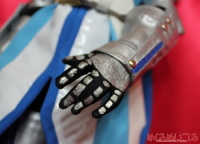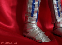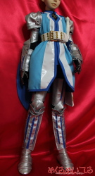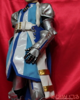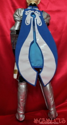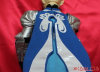 SD13少年サイズ テイルズオブヴェスペリア フレン・シーフォ ![]() ※写真をクリックすると大きい写真が見れます こちらの衣装はお客様からお預かりした素体に合わせて製作しています。 どんなサイズのドールでも衣装製作可能です。 お客様の大切なドールにコスプレさせてみませんか? ![]() ・ハイネックインナー 黒いハイネックの長袖シャツを製作しました。 首の後ろでファスナー開きになっています。 ストレッチ性のある素材を使っています。ボディにも優しいです。 肩に肩鎧を着けるためのスナップがついています。 ・ジレ 水色地に白のプリント模様、青い縁のロングベストのような上着を製作しました。 襟元はホック留め、お腹の前はスナップボタン開きになっています。 肩にはマントを着けられるスナップの受け口を付けています。 ・肩鎧左右セット 肩から二の腕にかけてを多う鎧パーツを製作しました。 腕を通し、インナーの肩にスナップ留めしてください。 お客様の希望通り、銀色の合皮で製作しています。 金属的な照りを強調したい場合は、エナメル素材に変更も可能です。 突起部分はカシメを打ちつけています。 腕を通すときは手が通らないのでハンドパーツを外して取付けてください。 ![]() ・マント 青いマントを製作しました。 白い模様はエナメル素材を使っています。 二股に分かれた背中心は丸く刳り抜いた形になっています。 肩の金色のカシメは飾りで、裏側のスナップで着脱できるようになっています。 ![]() ・腕鎧&手袋左右セット 腕を通す鎧と手袋を製作しました。 こちらも突起部分はカシメ、腕当てのライン部分は二枚重ねにして、 下地部分が影になるよう、立体的に製作しています。 腕を通すときは手が通らないのでハンドパーツを外して取付けてください。 手袋はハンドパーツの形に合わせて、五本指が通るようにしてあります。 銀色の部分はプリントでいれています。 ・ベルト 白い合皮でベルトを製作しました。 特注の三列ピンのバックルを使っています。 ピンに合わせてベルト穴に金色のハトメを打っています。 裏側に鞘を取付けられるスナップを付けています。 ![]() ・パンツ 黒い細身のパンツを製作しました。 ストレッチ性のある生地を使い、ボディにも優しいです。 フットパーツを付けたまま穿かせられるようにしてあります。 前ボタン開きです。 ・脚鎧セット 腕鎧と同様に溝模様を作った足鎧を製作しました。 脚に巻き付けて後ろでマジックテープ留めして着用できるようになっています。 膝部分は曲げられるよう、太腿部分と脛部分の二部構造にしています。 上半身の鎧と素材は合わせて合皮を使っています。 青い模様部分は素材を変えて立体感を出しました。 サイドの突起部分にはカシメを打ちつけています。 ![]() ・靴 お預かりした素体のフットパーツに合わせて靴を製作しました。 素材は各鎧と合わせて合皮を使っています。 銀色の靴部分に、立体的になるよう甲鎧をつけました。 靴底は黒ゴムで滑りにくくしています。 ![]() ・剣 白い柄に青い刀身の大剣を製作しました。 白い柄の部分は樹脂成形にクリアコートです。 刀身のサイドは白で、平たい面に金色の突起をつけています。 ![]() ・鞘 白い合皮と金色のエナメルで鞘を製作しました。 別途製作した剣を納めることが可能です。 お見積り依頼、ご注文はこちらまで shop@mekurumeiteru.net オーダーメイド衣装は『めくるめいてる』におまかせください! 細部へのこだわりはオーダーメイド製作ならではの醍醐味です。 |